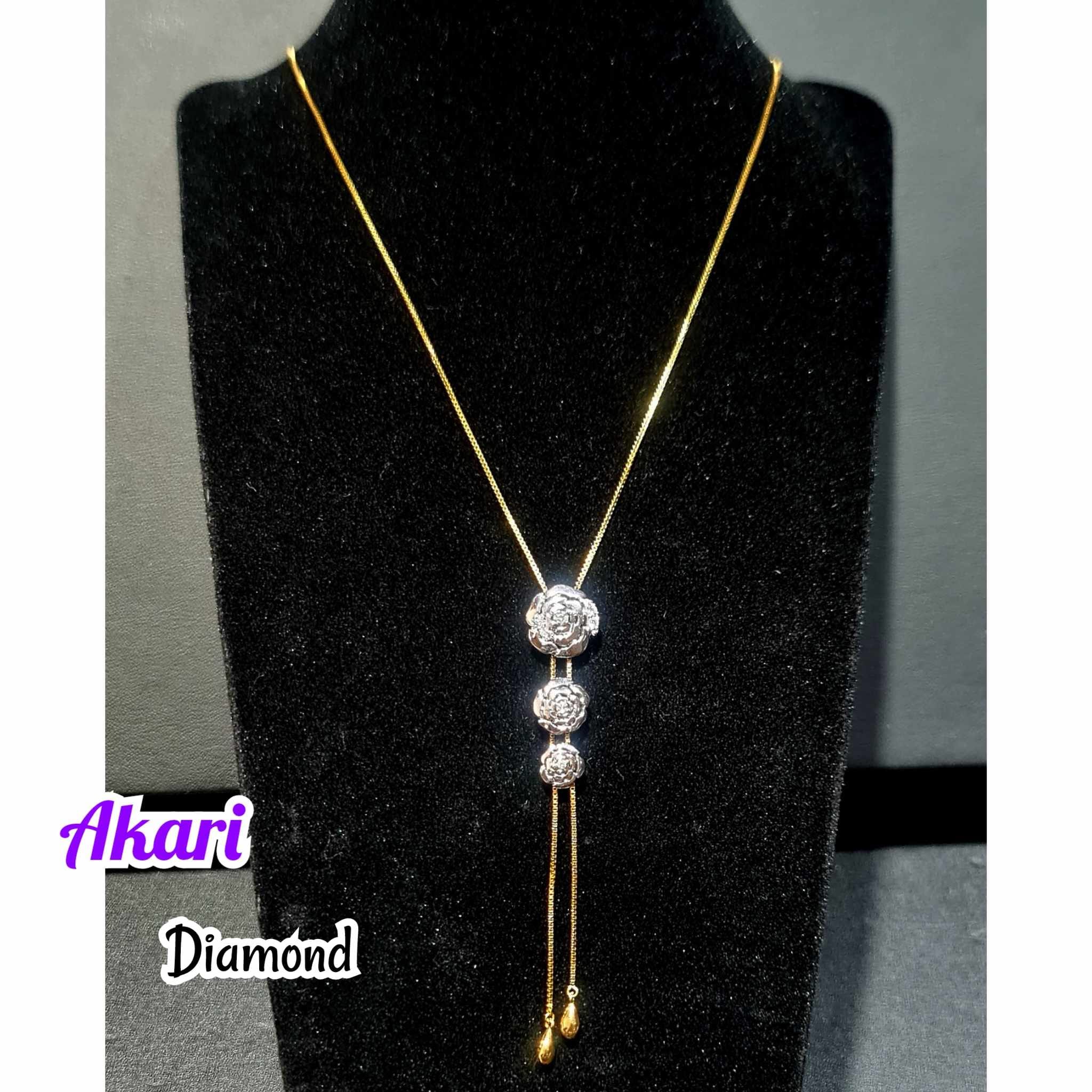 #Akari ရဲ့အသစ်ထွက်ရှိထားတဲ့ ရွှေသားထူထူလေးနဲ့ ကျစ် ကျစ်လစ်လစ် ပန်းပွင့်လေးတွေဆင့်ထားတဲ့ စိန်ကြိုးလှလှလေးကို ကြွေမိတာ အမှန်ပါပဲနော် ….